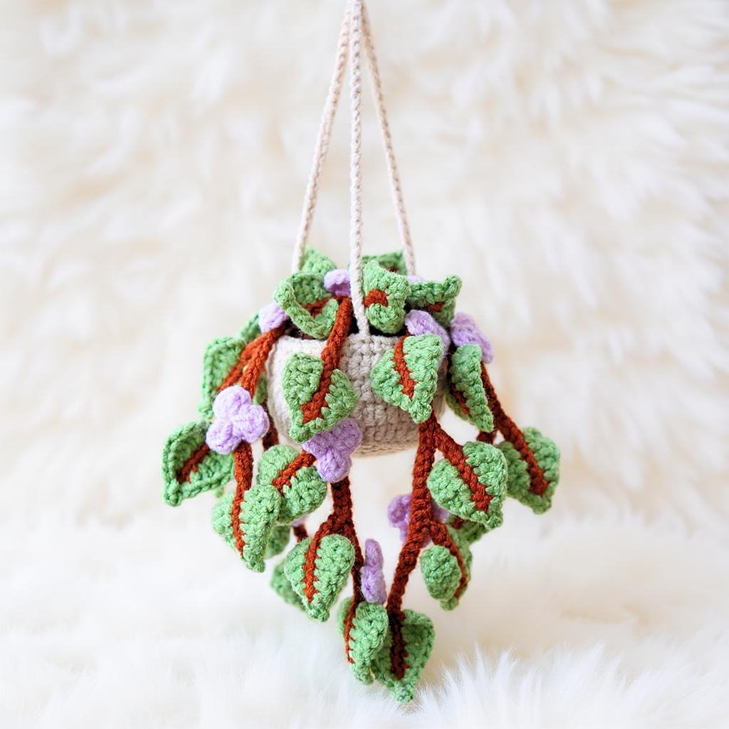 - The Lovely Purple Flower Basket: A rich and vibrant creation, this basket adds a regal touch of color wherever it’s placed. Finished size is approximately 7.4 inches (19 cm).
